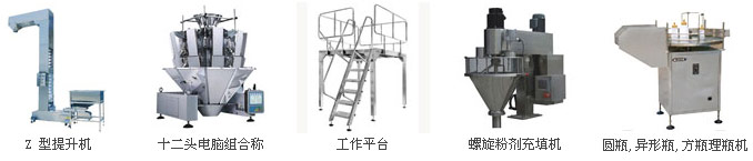 調(diào)味鹽全自動灌裝生產(chǎn)線主要組成部件: